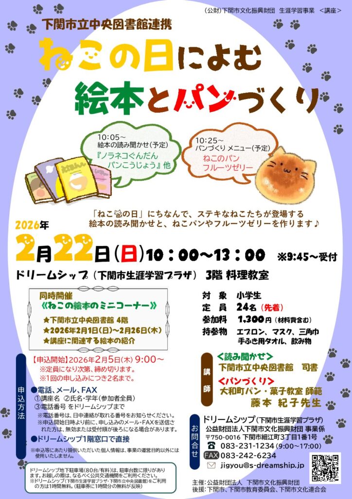 下関市立中央図書館連携 ねこの日によむ絵本とパンづくり
