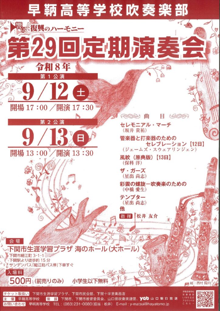早鞆高等学校吹奏楽部 第29回定期演奏会