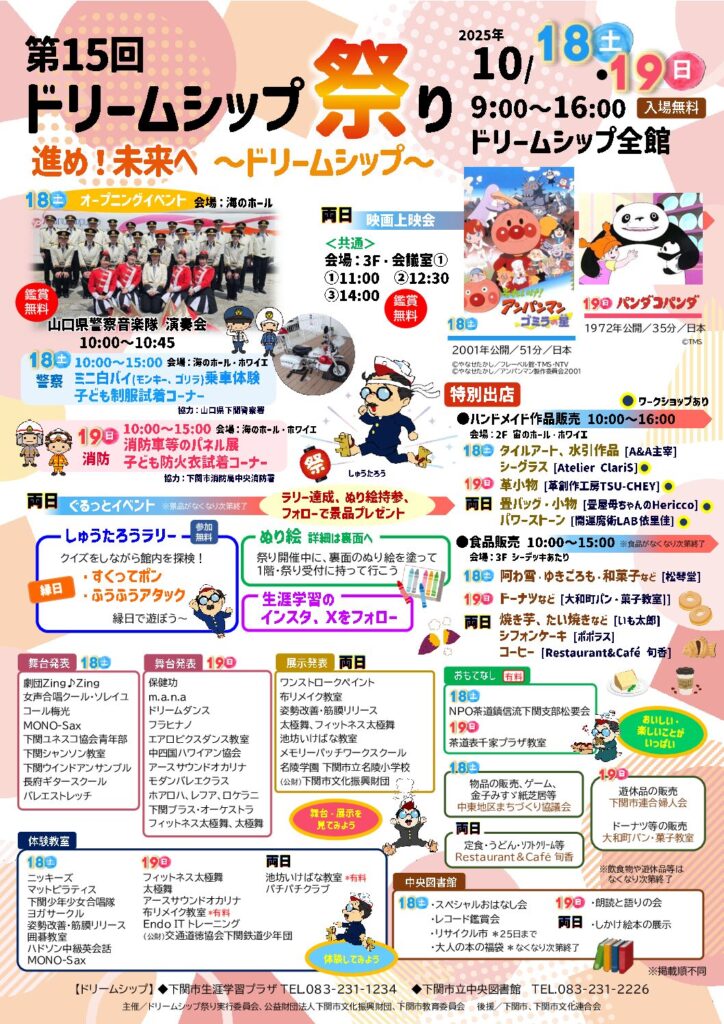 2025年10月18日(土)〜10月19日(日) 両日 9:00~16:00 ※イベントによっては、15時終了のイベントもあります。 チラシをご覧ください。 ※食品販売、遊休品等は、品物がなくなり次第、終了となります。 ※イベントの景品がなくなり次第、終了となる場合があります。 |