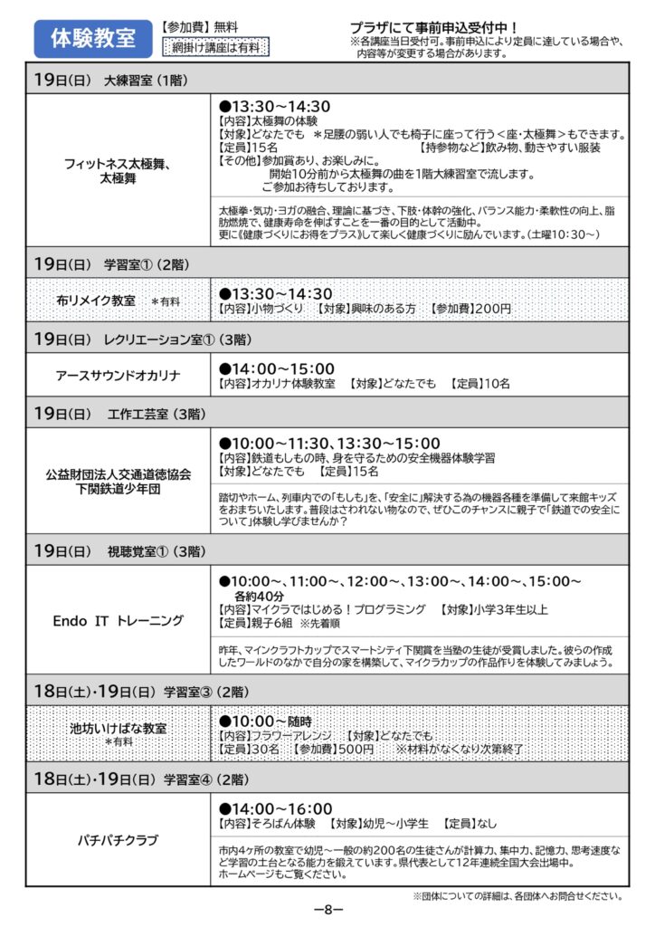 ●体験教室事前申込受付中 詳しくはプログラムをご覧ください。