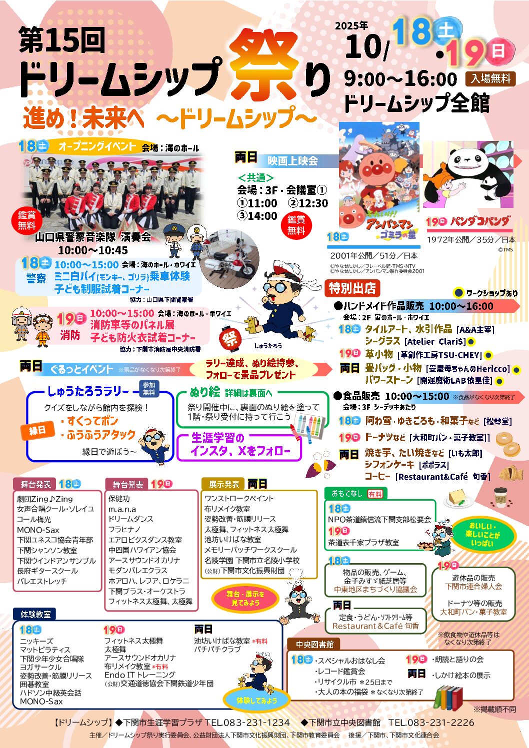 今年のスローガンは『進め!未来へ ~ドリームシップ~』に決定! チラシはコチラ<PDF> 舞台発表や作品展示などの活動発表のほか、体験教室やお茶席、図書館イベントなどを開催! この他にもオープニングイベントとして山 … 続きを読む 第15回ドリームシップ祭り